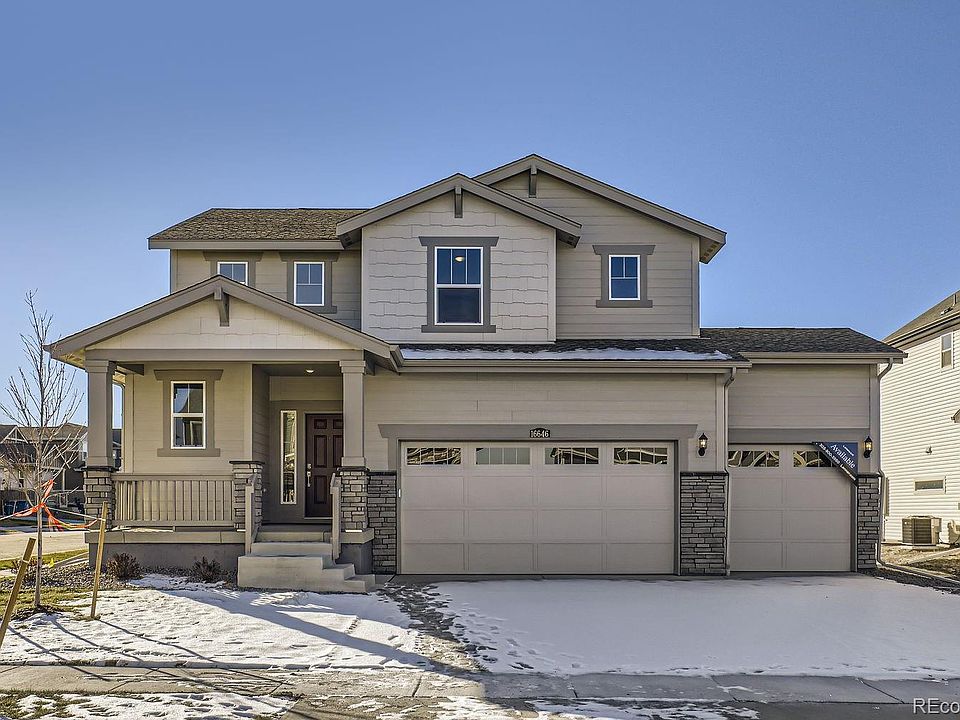 This home will be available for sale starting 12.1.24. Please call the welcome home center to be Pre-qualified and be on the waiting list. The beautiful new Elbert 2-story in the heart of the coveted Reunion Ridge features, 3 beds, 2.5 baths, laundry, great room, kitchen, dining room, unfinished basement for your future expansion, 3 car garage and more. What some builders consider high-end upgrades, Lennar makes a standard inclusion. Boasting quartz countertops throughout, luxury vinyl plank flooring, stainless steel kitchen appliances and more, you’ll want to make this house a home. Reunion is a well established, master-planned community featuring a family friendly pool, fitness facility, gymnasium, Buffalo Run Golf Course and charming lakeside coffee house, all with an easy commute to Denver, DIA and the 470 corridor. Come see what you have been missing today! Welcome home!