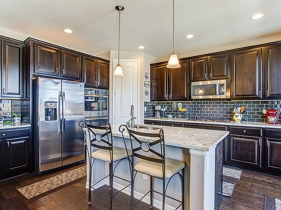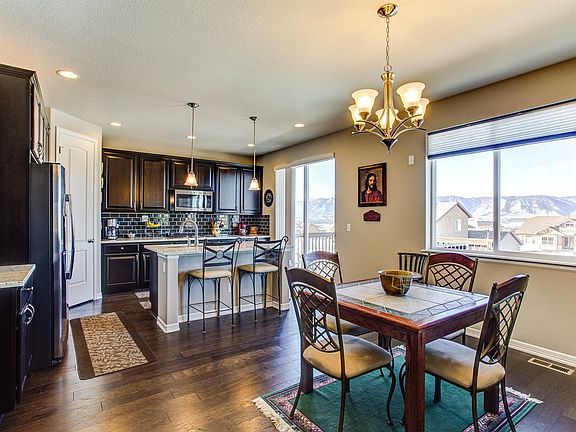 Truly Stunning Ranch Styled Home-Brand New April of 2015! Breathtaking Pikes Peak & Rocky Mtn Views from All the Open Living Areas will Capture Your Heart along with the Stellar Upgrades; Gourmet Chef's Kitchen, Sparkling Granite Slabs, 42" Cabs, SS Appliances, Hand Scraped Walnut Flooring, Tile Surrounds & More! A Finished Walk Out Basement w Room to Create Your Own Space Complimented by a Bedroom & 3/4 Bath are Icing on the Cake! THIS Home will Save You All the Builder Upgrade Costs and Deliver the High Caliber Living You Expect!