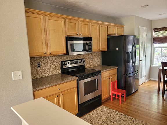 Move in special to close out January - This beautiful home has so much space for your family to live and grow in. Open living and kitchen area has updated appliances and wood floors, open to the dining area. Carpeted living area is perfect for cozy family evening. Master bedroom has custom closet system and private bath. Unfinished basement has additional play and workout space. Beautiful neighborhood with large, mature trees and a huge green open space behind is great for outdoor play. This is a great home! One year lease term. No smoking or vaping on property.