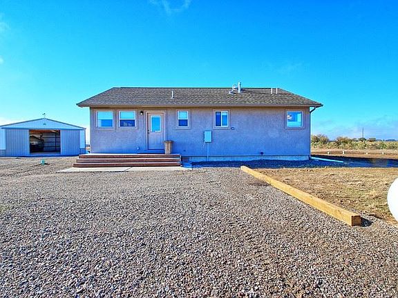 Almost New! This home has hardly been lived in (really)! One owner stucco home with views in every direction. Situated on a county road ( that turns into a private road just past the house) and only 1 home located to the north. Home was built with expansion in mind. 1280 sq. ft. on the main level, beautiful kitchen ( soft close cabinets, under cabinet lighting and stainless appliances) you won't want for anything. Master bedroom offers a jetted tub, walk in shower and ample closet space. Vaulted ceilings, open living/dining area, good lighting and lots of natural light and did I mention the great views from all the windows. The unfinished basement offers an additional 1280 sq. ft. with room for 2 additional bedrooms, bath and family room or an office. ( Septic was installed for a 3 bedroom home). Your livestock will be happy with the corral and animal shelter. Plenty of parking, NO HOA!