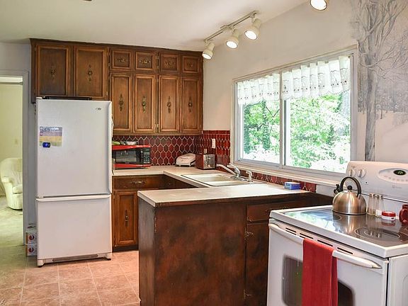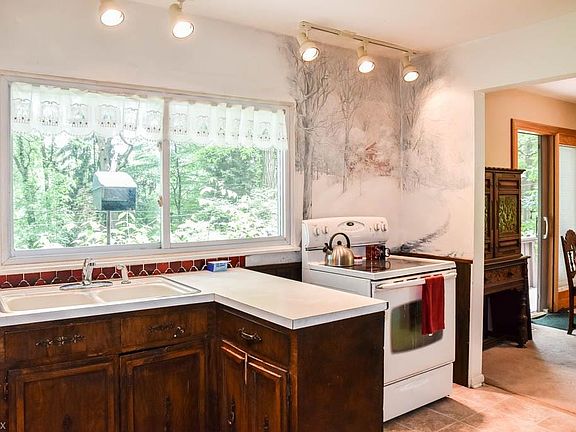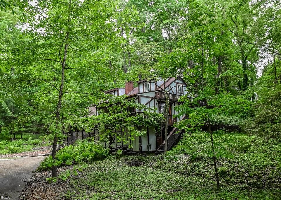 Super unique 3 bedroom, 3 full bath home filled with character and potential in a cottage-like setting! Incredible North Canton location! Minutes from Belden Village and the highway yet tucked away in a serene, tree-lined neighborhood away from the hustle and bustle. Entirely wooded lot with wonderful deck space that wraps around the majority of the home! Double sided fireplace in the living room and the library, both with access to the deck. Great built-in shelving in the library and a 12-foot deep closet in the living room. Spacious kitchen with nice cabinet space and access to the sunroom and full guest bath. Off of the library is the master suite. It offers a built-in vanity, large closet and a full bath. Upstairs, there are 2 bedrooms, a huge hallway closet and a full bath. Bedroom 2 has exterior access to the deck and stairs to the yard. Potential income by renting this space! Downstairs, there's an office and ample storage space with walkout access to the 2-car garage and a second staircase to the kitchen. This home is sold As-Is. Private, in a great location and full of possibilities. Call today to schedule a private showing!