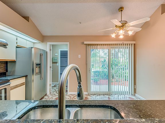 This home highlights high vaulted ceilings and a sunroom at the back of the house. A wet bar and a toasty fireplace complete the living room which leads you to the kitchen with stainless steel appliances and breakfast bar seating. The master bedroom has a separate exit to a closed patio and an ensuite master bathroom that features dual sinks, beamed ceilings, skylights over the bathtub, and a semi-private toilet area. Easily accessible to I-4. All Opendoor homes come with a 30-day satisfaction guarantee. Terms and conditions apply. Open House: Mon-Sun, 6am-9pm