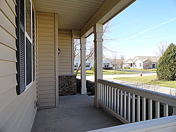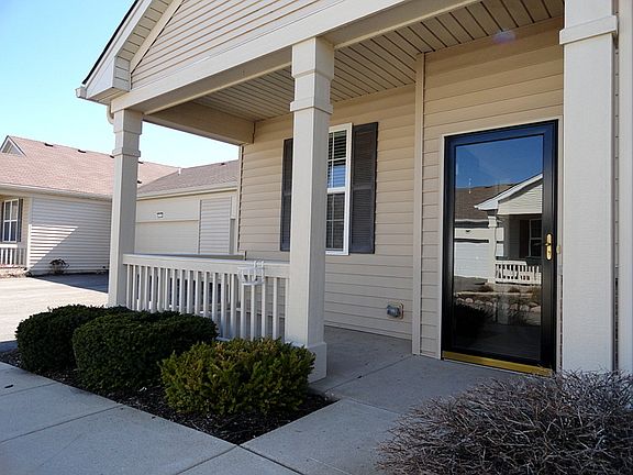 Sought after Carillion at Cambridge Lakes -Active Adult Living Gated Community! END UNIT Whitney Model with a delightful full size front porch!! 9 ft ceilings. Tall kitchen Cabinets. Open floor plan with inviting Eating area off the kitchen. Sliding Door to Private Patio with Lovely Mature Pine Trees. All Freshly painted and New Carpet in both the BRs. Second BR has double door and could be an a desire able office or TV room. Wood laminate in the LR and DR. New Furnace and AC in 2021 and water heater in 2022. Floored Pull down attic for extra storage. Two car garage. Ready to ENJOY!! This community offers a Clubhouse, with fitness center, aerobics studio, indoor pool and spa, outdoor pool, gathering space, crafts, billiard room, computer lab and library. Also, for your fun and healthy lifestyle - tennis, bocce ball, horseshoe pits, pickleball, gardening plots. Walking and biking paths and a 3-hole golf course. Easy access to 190, O'Hare, Randall and RTs 47 AND 72. A perfect move in and enjoy choice! No Stairs and great for entertaining.