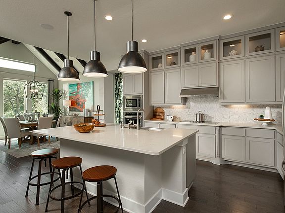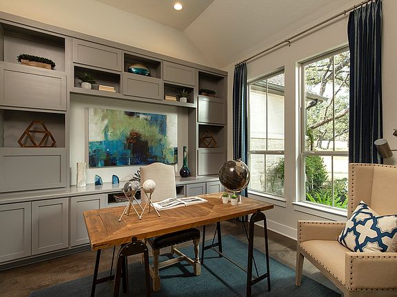 Your dream home awaits in Headwaters. This elegant, single-story home is situated on an 80' homesite with breathtaking hill country views! Enjoy peaceful sunsets in your backyard while being a short walk to the brand-new elementary school opening Fall 2025. Upon entering, you are welcomed into the large, open living space, which includes a surplus of large windows that bring in natural light and outdoor views. Entertaining is easy in the chef's kitchen, which is adjacent to the family room and dining area and boasts a large island and custom-painted cabinetry. Around the corner is a separate game room, ready for movie-watching and fun. The primary suite, situated at the rear of the home, provides a private and restful retreat complete with a stunning bow window from which to take in views of the surrounding greenbelt views. The luxurious primary bath features a large shower, free-standing soaking tub, and separate vanities. A second bedroom with a private bath is a perfect guest/in-law suite, while the other two bedrooms share a convenient Jack-and-Jill bathroom - perfect for kids. A study and 3-car garage finish this stately, LEED-certified home. *Photos and Virtual Tours may be of the same home plan located in a different neighborhood. Features and elevations may vary.