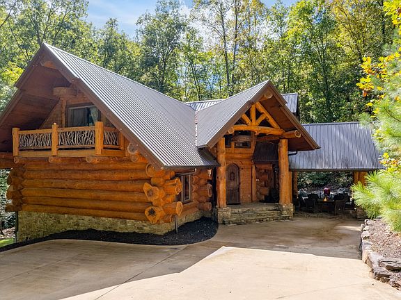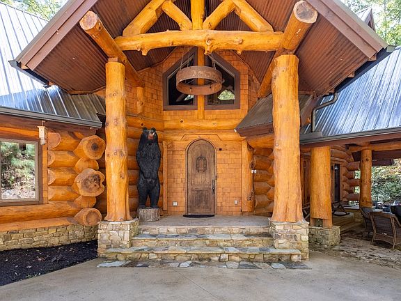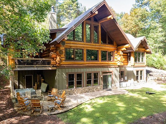 Welcome to a world of rustic elegance and timeless charm at the majestic Grand Teton Lodge. Featuring a large vaulted great room with exposed logs and an open kitchen and dining room creating a dramatic interior inspired by the Grand Tetons. Crafted of hand peeled logs with some over 2 feet in diameter with Swedish coping and saddle notch accents throughout. The lodge features 2 bedrooms on each of its 3 levels, providing plentiful space for the largest of gatherings, yet retaining its coziness with its warm finishes. You will find unmatched attention to detail everywhere you look from custom, handmade furniture, hand scraped logs, stonework, hammered copper sinks, custom lighting, and more that must be seen. Nestled into the perfect setting in the North GA mountains, there are just under 9 AC of nature to explore as you take the path along the nearly 30ft wide Long Branch Creek. Located on a designated trout stream for the avid fisherman, the property abuts 1,000s of acres of freshman's club land to ensure privacy. Flat land to the creek, yet not in the 500 year flood plain (no flood insurance required). Located in the amenity rich Talking Rock Creek Resort and accessed by all paved roads 75 miles from Atlanta. You'll be captivated by the grandeur of this impressive lodge, which stands as a testament to both craftsmanship and luxury. With its awe-inspiring architecture and a setting that seamlessly blends into the natural surroundings, this lodge is a true masterpiece.