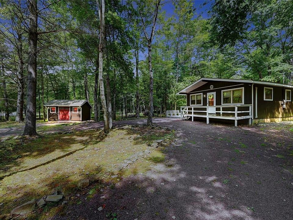 Alluring Countryside Cabin! Affordable Ranch-Style Investment Opportunity Offering 2 Bedrooms, 1 Bath, Large Corner Lot w/ Storage Shed, Multiple Decks & Private Circular Driveway. Sun-Filled Open Concept Kitchen & Living Areas Showcase Hardwood Flooring & Brick-Faced Propane Fireplace For A Peaceful Cottage Feel. Updates Include Freshly Painted Exterior & Interior Plus Newer Fixtures & Appliances. Expansive Decking For Entertaining Along w/ A Camp-Style Fire-Pit. Delight Your Guests At This Central Pocono Location Easily Accessible To Major Routes, Hiking, Skiing, Boating & More!