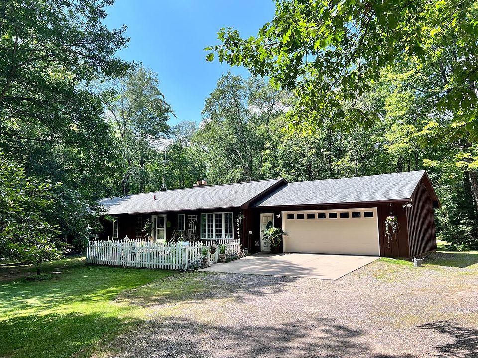 Private setting on 10 acres, just east of Eagle River! Welcome home to this 3 bedroom, 1 1/2 Bath, 1472 sq ft ranch house at the end of the road, that includes: 2 gas fireplaces, pellet stove, a 2 car attached garage, and all the wildlife you could ever ask for. The yard is beautifully landscaped, and white picket fences add to the ambiance of 2 gorgeous flower gardens. The home has been nicely renovated, with new flooring throughout most of it, the kitchen has been completely remodeled, and fresh paint on the inside and out. There is a large pole building for all of your outdoor toys, and ATV/snowmobile trails nearby, easy access, just minutes from Eagle River & the Nicolet Natl. Forest. INVESTORS: Perfect property for a year-round investment vacation rental. Eagle River is the snowmobile capital of the world. Sit on either sundeck and enjoy a cup of coffee in the morning and watch the deer or just close your eyes and listen to the sound of the birds and let your worries melt away!