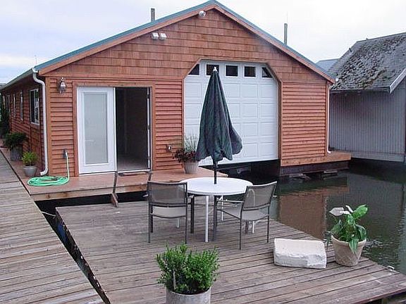 PRICE REDUCTION! Metal roof, cedar siding. gas furnace 1 year old. Steel Stringer, new floats 2 years ago. 2 bed, 2 baths. Very open, vaulted. All appliances included. Washer and dryer also. 450 sq ft boat well with auto opener. Slip Ownership. Custom floating deck done. Will fit in or out of boat-well.