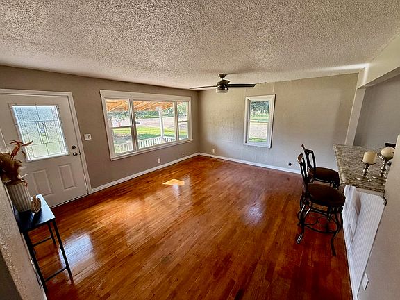 A 30 X 28 finished walls\ceiling, double overhead doors, walk in door w\access to amazing patio!! A fabulous man\woman cave, with bar area, shop, workout area, probably 4 Volkswagen Beetles LOL!! PLUS mini-split heat & air!! Then, a She-Shed\Office plus Garden shed, all within a new privacy fenced in back yard. The front covered porch features a great area to enjoy the Fall days & evenings!! Move in ready, 2 bedroom, 1 bath with beautiful hardwood floors, fun accented wooden custom ceiling. Open floor plan, inviting living room into the breakfast\cocktail bar Kitchen with a festive corner pantry. Laundry off the kitchen & easily accessible to the backyard entrance. Hurry and call Kendra Trueblood, About You Realty at 785-483-9347 for your private tour, you won’t want to miss all of this great OUTDOOR & INDOOR space!!!