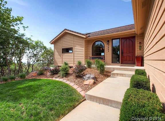 Beautiful 360 Degree Views And Main Level Living In Hunters Point! Wood Floors & High Ceilings Welcome You To This Elegant Ranch Home With Views Of Cheyenne Mountain & Pikes Peak! The Open And Bright Foyer, Living Room & Dining Room Greet You At The Door With A Wall Of Windows And A Sliding Glass Door Leading You Out To The Wrap Around Wooden Deck! In The Kitchen You Are Welcomed With Granite Countertops, A Double Oven, Gas Stovetop, A Lovely Breakfast Nook And A Walk Out To The Deck On The Side Of The House. Opening To The Kitchen, The Family Room Contains A Rock Ledge Fireplace And A Walk Out to The Deck With Views And Plenty Of Space To Entertain! The Large Master Bedroom Suite Showcases An Abundance Of Natural Light From The Large Window And Glass Door Leading You To The Deck With More Amazing Views! The 5pc Master Bathroom Suite Presents A Double Vanity With Granite Countertops, Soaker Tub, Ceramic Tile Floor And Matching Tile Continuing Into The Large Glass Surround Freestanding Shower. A Half Bath And Laundry Room Complete The Main Level. You'll Find Three Additional Bedrooms On The Lower Level - Built In Shelving, Double Door Walk In Closets And A Window Bench! The Third Bedroom Has Brand New Carpet And A Walkout To The Back Patio. The Basement Houses The Large Rec Room With Built In Shelving, Beautiful Brick Mantle Fireplace, Wet Bar & Walk Out To Covered Patio -- This Room Has It All! The Bathroom Boasts A Steam Shower With Granite Countertops Completing The Basement In This Lovely & Elegant Home In Hunters Point! Located Close To District 20 Elementary School, Hiking Trails & Shopping Centers!