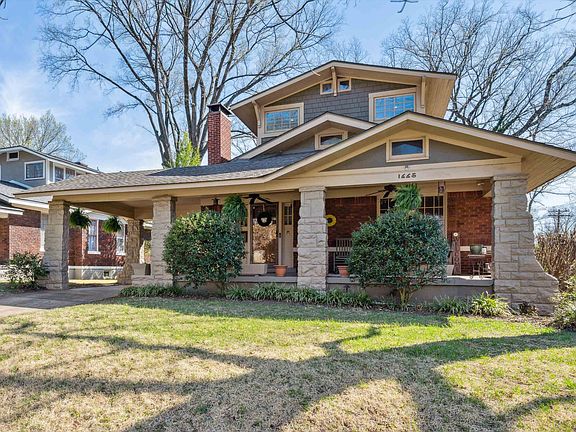 Located in the heart of the Evergreen Historic Neighborhood, this stunning circa 1927 bungalow is a 4 bedroom (2 up and 2 down) 2 bath home that has a beautiful brick and cedar shingle exterior, with a large front porch. The modern updates and additions blend seamlessly while retaining the original character. The covered carport and inviting porch lead to a spacious living area with hardwood floors, large windows, beautiful crown molding and fireplace. The updated kitchen flows into the breakfast nook and dining room. There are 2 large downstairs bedrooms and a renovated bath. The oversized primary bedroom has new hardwood floors with an abundance of walk in closet space. The office/4th bedroom is surrounded by windows and a walk out balcony overlooking the private backyard. Newly added rear screen room and a 2 car detached garage. A perfect blend of historic charm, space, and convenience located near Overton Park and Williamson Park, Ecco Restaurant, the zoo and Crosstown Concourse.