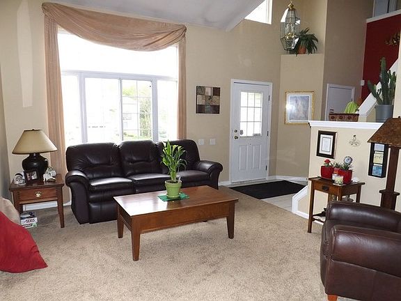 Beautiful 3 bdrm home, freshly painted, newer carpet, stove, furnace & water heater. Open floor plan with high cathedral ceilings. Full finished English basement with separate work area, large landscaped fenced yard with hot tub makes this perfect for relaxing. Plenty of extra storage in the home & garage. Nothing to do but move yourself in!