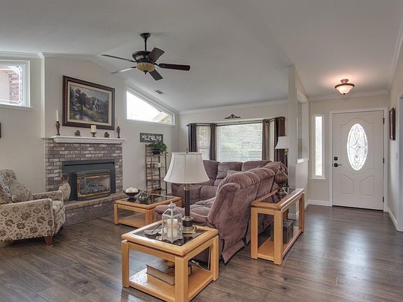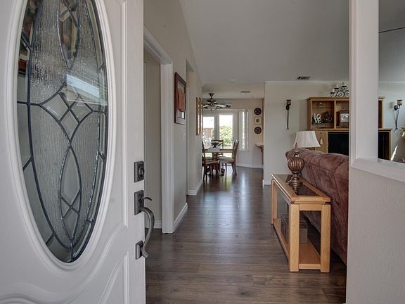 Welcome Home to Blossom Valley! You will be pleasantly greeted into this home by the vaulted ceilings and crown molding. Your eye will follow the rustic fireplace and the beautiful custom etched windows above it, bringing in lots of natural light! This pristine home offers a master suite which includes a master bathroom and a walk-in closet. Down the hall you will find a second bedroom, another bathroom, and a nice office den which can easily convert back into a third bedroom. The kitchen and dining room combo, offers tile countertops, nice cabinets, a pantry, a new dishwasher, and a stove with a convection oven. For pet lovers there is also a convenient doggie door which goes back into a fenced, manicured back yard that is perfect for relaxation and/or entertainment. Don't miss out on the opportunity to make this your next home!