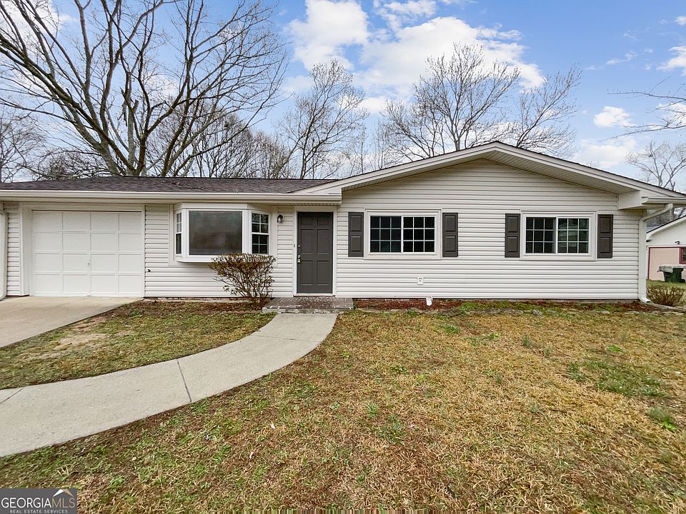 Welcome home to this charming 3-bedroom, 2-bath ranch in Conyers! This move-in-ready gem features fresh paint and brand-new carpet throughout. The bright white kitchen cabinets and sleek black appliances create a modern yet cozy feel, while the spacious dining area off the kitchen is perfect for gatherings. The master bedroom boasts a versatile bonus room-ideal as a sitting area, office, or nursery. Enjoy outdoor living with a fenced backyard, patio, and storage shed. The 1-car garage includes a convenient laundry room. Low-maintenance vinyl siding completes this lovely home. Schedule your showing today!