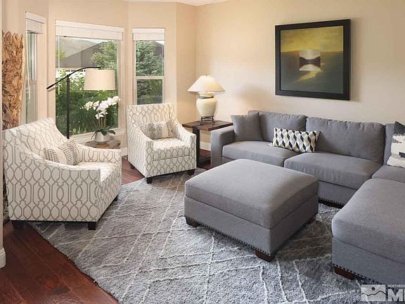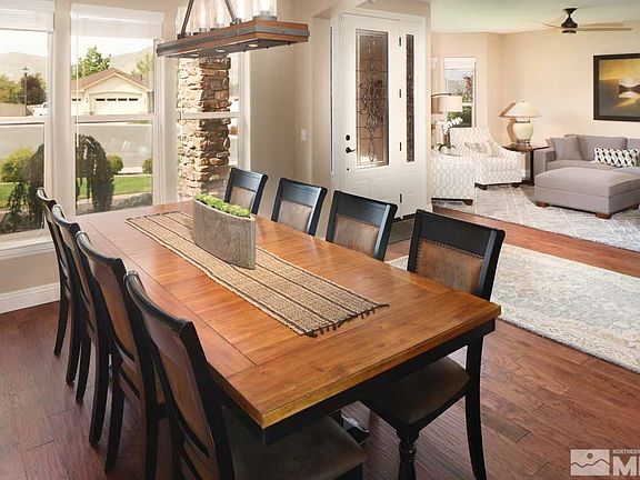 Luxury home in Carson City. Prime location off the tee box of Silver Oak Golf Course. This open floor plan offers lots of light, great views and first floor living. The spacious chef's kitchen features solid stone countertops and updated GE Cafe appliances. A large main suite has spacious bathroom and closet. Upstairs is a wonderful game room with kitchenette, full bathroom, balcony, and pool table. Many smart home amenities are included. Yard includes covered patio, hot tub, and lush landscaping., The dining room and main suite have tray ceilings have crown molding led lighting. The home's nine foot ceilings are well lit with led recessed lighting, many are dimable and controllable using the smart home apps. The smart home features include a Lutron Caseta smart lighting and fan controls, Apple Home, Phillips Hue Router. The router connects the home wirelessly and CAT5 with wired connection to TVs throughout the home and the office. Spectrum provides Gigabit download and upload speeds. There is a tri-fuel generator that can be hooked up and can power the house when needed. The spacious 3 car garage is heated and air conditioned, a dedicated 20 amp circuit for pressure washer or tools, bright LED panels, tv mount, and features an epoxy flooring with non slip finish. The location is a half hour to Reno or Tahoe. The small community down the road from the grocery store, hospital, restaurants, and I-580 free way access. There are paved and unpaved trail near by for local recreation too. The TV's mounted on the walls will be removed prior to close of escrow. The pool table and dart board upstairs will stay with the home.