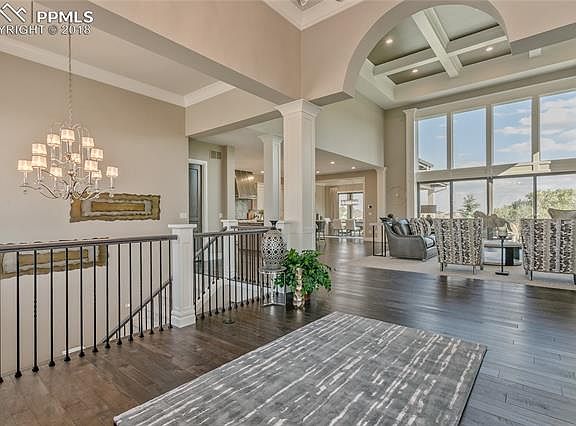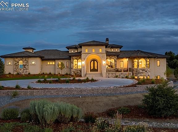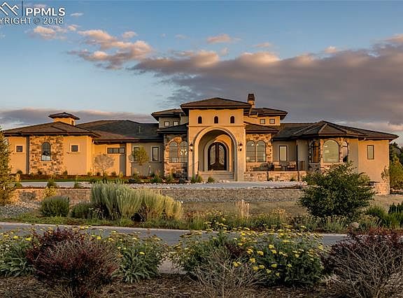 The jewel of 2018's Parade of Homes! Just 45 minutes south of the Denver Tech Center. Includes office/den with ensuite, basement recreation room, movie theater, gym, yoga/multipurpose room, laundry rooms on both levels, mud room, enclosed safe room with perimeter concrete walls and a true chefâs kitchen complete with wolf and subzero appliances, and butlerâs pantry. Entering the great room you will find 20ft coffered ceilings, custom stained wood flooring, and an open layout with the kitchen and dining areas. The main level master suite features gorgeous golf course views, two large walk-in closets, and radiant heated floors in the ensuite. You will find new to the market finishes throughout the home with smart home technology and distributed audio. The beautiful millwork includes custom cabinetry by Riverwood Mills, and custom crown molding and trim details extensively through the home. The oversized four car garage has additional room for a shop or storage. Incredible architectural exterior details with a custom iron forged entry door, aluminum-clad wood windows by Sierra Pacific Windows, beautiful landscaping with a firepit on the back patio thatâs visually framed by the two-story windows of the great room.