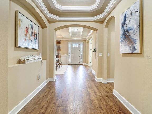 Prepare to be WOWED! Gated, in a prime location, Model Perfect & move-in ready! Beautiful conservation view & neighborhood walking/running path conveniently located behind the home. This GEM offers 5 bedrooms, 3.5 bathrooms, Den, w/brick pavered & screened lanai. As you enter, you'll notice the wood laminate flooring (installed Feb. 2019). To the left is the beautiful Den w/built-in bookcase. The formal dining room is inviting w/stunning light fixture. Two bedrooms w/Jack & Jill bath and half bath are located toward the front of the home. The spacious & open great room has built-in entertainment center and overlooks conservation. Master bedroom offers spectacular closet organization system, includes two built-in hampers & built-in ironing board (folds away out of sight). Two more bedrooms & a full bath are to the right of the casual dining area. Gourmet kitchen boasts 42" cabinets w/ample storage, walk-in spacious pantry w/drawers & large center island. Custom wood shelving in all closets. The laundry room includes built-in cabinetry & hamper. The included washing machine has the ability to wash 2 loads simultaneously (dryer incl. too). This home is extremely welcoming & comfortable. Custom Shower doors, Exterior painted Dec. 2019, Bathroom mirrors are all framed, 8' doors, Crown moulding, Tankless water heater, Gutters, Water softener, 2 NEST thermostats, RING, My Q Smart Garage Door, SimpliSafe Security System. Many more upgrades, Ask your Realtor for attached list.
