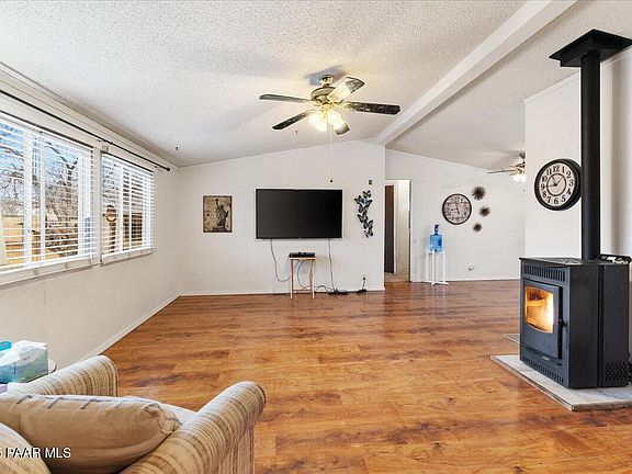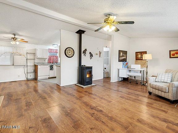 This house is a thoughtfully appointed property designed with both comfort and functionality in mind, particularly for horse owners. The house features three bedrooms with great closet space, providing ample storage. The bedrooms are carpeted, while the main living areas have solid flooring. A pellet stove offers a cozy heating option. The property includes a new water heater and electrical panel, ensuring modern and efficient utilities. Additionally, a great solar lease is available for just $89 per month, which can significantly reduce energy costs. The property boasts a private front and back patio, perfect for relaxation. Both the front and back yards are landscaped, enhancing the property's aesthetic appeal. Complete perimeter fencing and cross fencing including perfectly placed