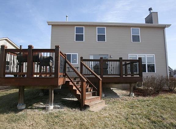 Reduced 6000 dollars !!! Good looking 10 years New home in popular Village at West Lake Subdivision a great home. This 2300 sq ft 2 story has 4 good sized bedrooms ,2.5 baths and an open floor plan. At the front door you start to notice the nice upgrades starting with the decorative brick front and covered porch . The 1st floor is finished either in a wide plank hardwood or attractive tile floor. The family room has an impressive stone mantel on the wood burning fireplace. The entry foyer has a cool decorative nook. The spacious Master bedroom has coffered ceilings and a bath with tub and seperate shower. The home has a large eat in kitchen with plenty of Cherry cabs and center island. There is a large rear deck off kitchen/breakfast room. The lower level is completely 2x4 studded out with stub plumbing and ready to finish. The home has been freshly painted, stairs and 2nd floor has new carpet and a new floor installed in master bath. 1st Showings 2/11