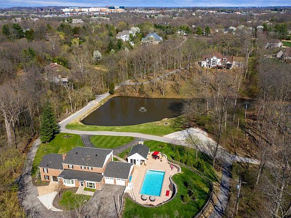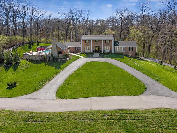 1.5 STY, 4 bd, 3 full, 3 half bths, set on a 3.62 acre wooded ridgetop lot over-looking lake, 5 mins from Chesterfield Valley & Hwy 40/64. Over 4500 sq ft of superbly fin liv space. Since Seller purchase, floors 1 & 2 taken down to the stud walls - Replacing kitchen, baths, flooring, most windows, front doors, wiring & plumbing. Main floor features wood look porcelein tile. Fabulous kit with large cnt island, 5 burner Wolf gas cook-top, custom white cabinets, Sub Zero fridge, farmhouse sink, double ovens, drawer microwave & subway tile backsplash. DR w/ custom cabs, wet bar, wine cooler, beverage fridge, stacked stone backsplash. Ensuite main floor bdrm w/ hardwood flrs, coffered ceiling, box wnd, AMAZING 17x15 closet, vaulted 230 sq ft bath w/ walk-in shower, custom cabs & cnt island. Remodeled W/O LL pool house w/ wet bar, 1/2 bth & vaulted fam rm with stone WB FP, overlooks Baker pool. 3 gar spaces. 4 HVAC systems. Quartz & granite counters thru-out, huge 2nd flr beds PUBLIC SEWER
