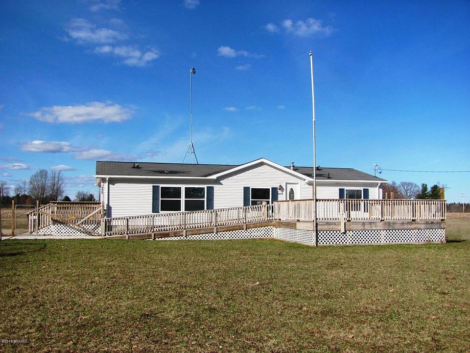 Nice 3 BR 2 Bath ranch on just over an acre just outside Big Rapids on Chippewa Lake Rd. Central Air, Generac automatic propane generator system, large fenced yard, huge 22 x 22 front deck and ramp recently added. Low threshold shower in master bath. Walk-in closets. Kitchen Island and pantry. Includes all appliances.