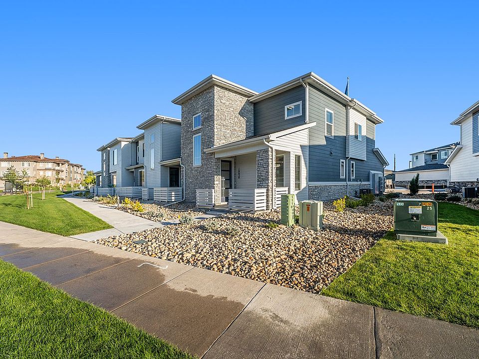 This beautifully finished townhome is loaded with upgrades and designer touches. End unit townhome has 3 bedrooms, 3 bathrooms, plus 2-car attached garage. Enjoy top of the line luxurious finishes such as 42 inch cabinets, quartz countertops, stainless steel appliances, marble tile backsplash, LVP flooring, and matte black finishes throughout. Luxury tile and upgraded bathrooms, large closets. Upstairs also features a built in office/desk area and convenient upstairs laundry. Enjoy easy access to E-470, Jordan Rd, dining and shopping centers, King Soopers, Costco, many surrounding trails, parks, and more! Small dogs will be considered on a case-by-case basis - sorry, no cats.