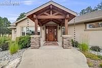 The View, The Vision, The Victory: A Black Forest Masterpiece Set on 10.5 majestic acres, this rebuilt masterpiece offers more than a home—it’s a legacy. Every inch of the two-level ranch with walkout garden level was thoughtfully reimagined after the original structure was lost in the 2013 Black Forest Fire. Positioned with precision using aerial imaging, the home now captures panoramic views from every picture window—north, south, east, and west. From the elegant roofline to the expansive patio, the property whispers intention. A geodesic dome crowns the meadow, perfect for greenhouse gardening or creative retreats. Nearby, a metal outbuilding parks an RV and two vehicles with ease. Fire-resistant landscaping surrounds a west-facing three-car garage, enhanced by a massive apron and dozens of solar lights that transform evenings into warm welcomes. The outdoor patio is year-round living personified—with a Santa Maria-style kitchen, hot tub, and fire pit, all built by the owner himself. Nestled into this landscape are rocks intentionally preserved, bearing gentle marks of a fire that reshaped not just the land, but the vision for its future. Every feature—from the elevated deck to the dome greenhouse—invites connection, comfort, and curiosity. This isn't just acreage. It's architecture, art, and resilience. A private retreat where nature frames your lifestyle and every sunset tells a story.