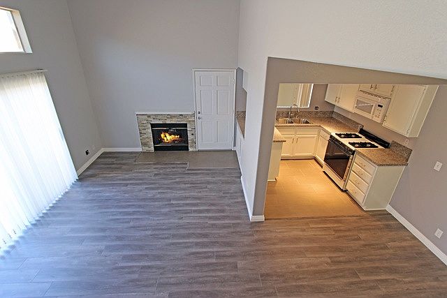 Remodeled and upgraded! Pictures say it all! This is a wonderful townhouse style apartment in a duplex building in the Huntington Harbor Area on a cul-de-sac street. Two spacious bedrooms, (master has its own private balcony!) and 2 1/2 baths! Drive into your garage and walk into the kitchen. Also includes covered parking space. Stackable washer & dryer hook-ups upstairs. Vaulted ceilings, tiled fireplace in living room with wood flooring, dining area is bright and light. Your modern kitchen has white maple cabinets and includes gas stove, disposal and dishwasher. Plenty of storage located throughout. The private patio off the living room wraps around to the entry and is large enough for your patio set, bbq, and chaise lounge too! Bike or jog to Bolsa Chica State Beach, shopping and food. Easy freeway access to 405 or 22! One year lease preferred. No pets allowed.