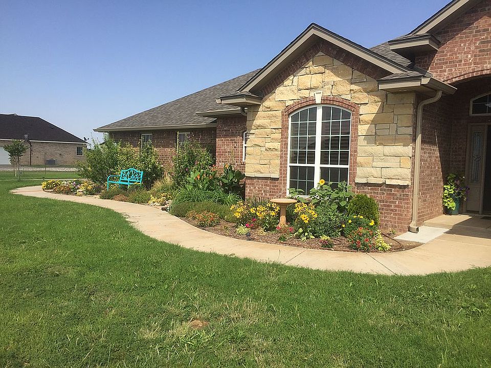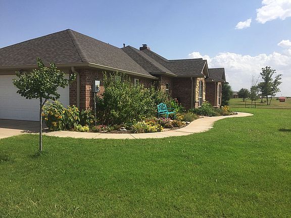 Spacious 4 bedroom, 2 bathroom and large office. 3 car attached garage with below slab storm shelter. Light and cheery kitchen with island and granite counter tops. 5 burner gas range/oven. Masonry fireplace and hardwood flooring in living area. Crown molding throughout, custom plantation shutters and window blinds. Carpeted bedrooms. Isolated master bedroom w/luxury hydro-tub and shower. Beautiful finish work on custom alderwood cabinets. Sprinkler system for entire acre property. Beautiful landscaped ‘wrap-around’ flowerbed. Over a dozen ornamental/fruit trees. Quality construction with concrete driveway. Seamless gutters on entire house. New deeper water well, March 2018. New roof installed, June 2019.