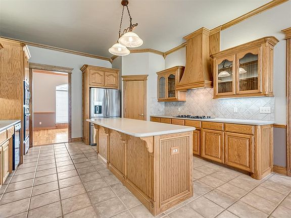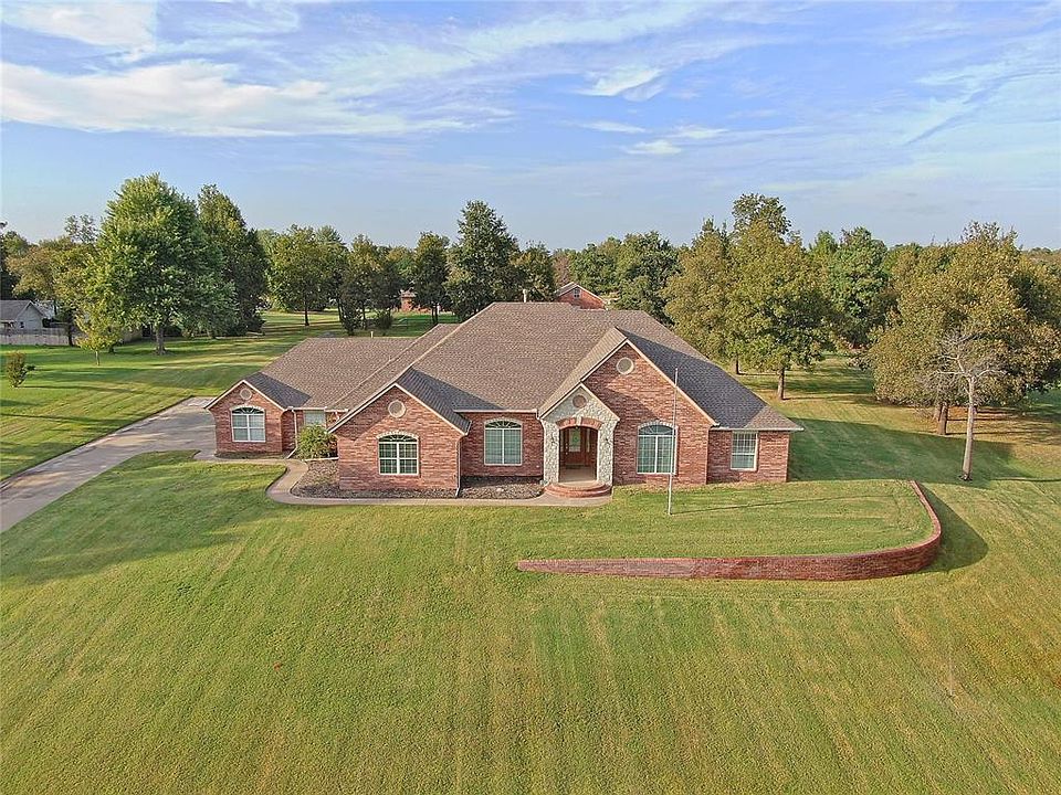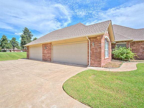 A unique find in Choctaw's Stonegate Crossing -- Its standout feature is an exceptionally large 1,116 sq. ft., 4-car garage with two separate bays, one fully air-conditioned—an ideal setup for a professional-grade workshop, artist's studio, or a home business headquarters. For peace of mind during storm season, the large master closet is also a walk-in concrete safe room, offering immediate, life-saving access when seconds count. The well-maintained 2,918 sq. ft. single-story home sits on 1.21 private acres. Inside, solid hardwood floors run through the main living areas, connecting a spacious living room and a dedicated study perfect for a home office. The functional kitchen is the heart of the home, with built-in appliances, a central island, a pantry, and abundant counter space. The master suite features a tray ceiling and a bath with a separate shower and Jacuzzi tub. All bedrooms have new carpeting for move-in comfort. A newer, 4-zone HVAC system allows for customized climate control and energy savings. Step outside onto the huge covered back patio, a great spot to entertain or relax while overlooking the expansive backyard. Located in the highly-rated Choctaw-Nicoma Park School District and just minutes from Tinker AFB and downtown OKC, this home offers a rare combination of space, utility, and safety.