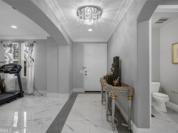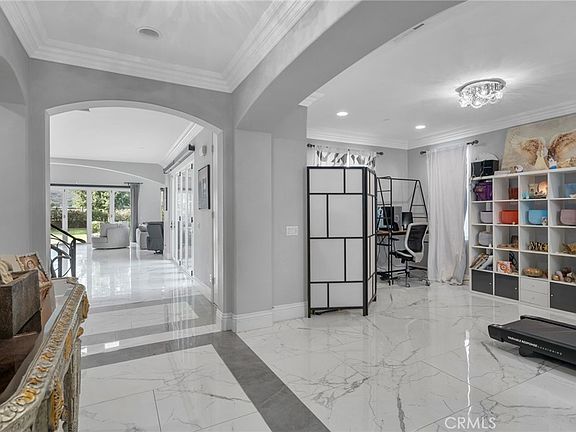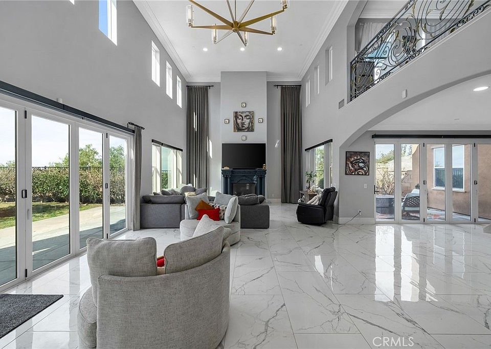Experience luxury and privacy in this exceptional 5-bedroom, 4.5-bathroom home, located in the prestigious gated Bella Vista Estates. With no direct neighbors, enjoy unmatched tranquility and breathtaking panoramic city views from every window. Designed for both comfort and entertaining, the open floor plan features an upgraded chef’s kitchen with premium Wolf appliances, Quartz countertops with striking gold and grey veining, and elegant Michael Aram butterfly light fixtures. The living room exudes warmth and sophistication with a custom fireplace, designer curtains, automated window shades, and California doors that seamlessly blend indoor and outdoor spaces. Step outside to the California room, perfect for year-round relaxation, or retreat to the upstairs patio off the primary suite to take in the stunning views. Custom stair railings with Gold Patina accents and plush stair carpeting add refined touches throughout. A private courtyard provides the perfect spot to unwind with a drink of choice while enjoying the cityscape. The home also includes a whole-home water softener, two reverse osmosis alkaline water systems, and 3M window film for both energy efficiency and security-grade protection. Nestled in a well-maintained yet relaxed HOA community with weekly landscaping services, the property features an impressive array of fruit trees, including lemon, apple, red orange, pear, grapefruit, pomegranate, tangerine, plum, and a majestic oak. With its prime location, high-end upgrades, breathtaking views, and a low 1.1% tax rate, this home is an entertainer’s dream and a rare find. Don’t miss this incredible opportunity!