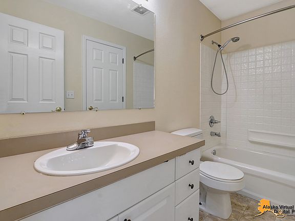Great condo with kitchen, dining area, living room, full bath with bedrm walk in closet and deck off Primary Bath/Bedroom, Laundry room and 1/2 bath ground floor with garage. 1/2 of garage is office. Upstairs is Fam Rm , Full bath and Bedroom. Ranch style with all amenities on 1st floor . Great community hidden in the woods of Chugach Park . Easy access decks all around building. Sorry, no pets. Tenant pays Electric average $86 Gas Heat $165