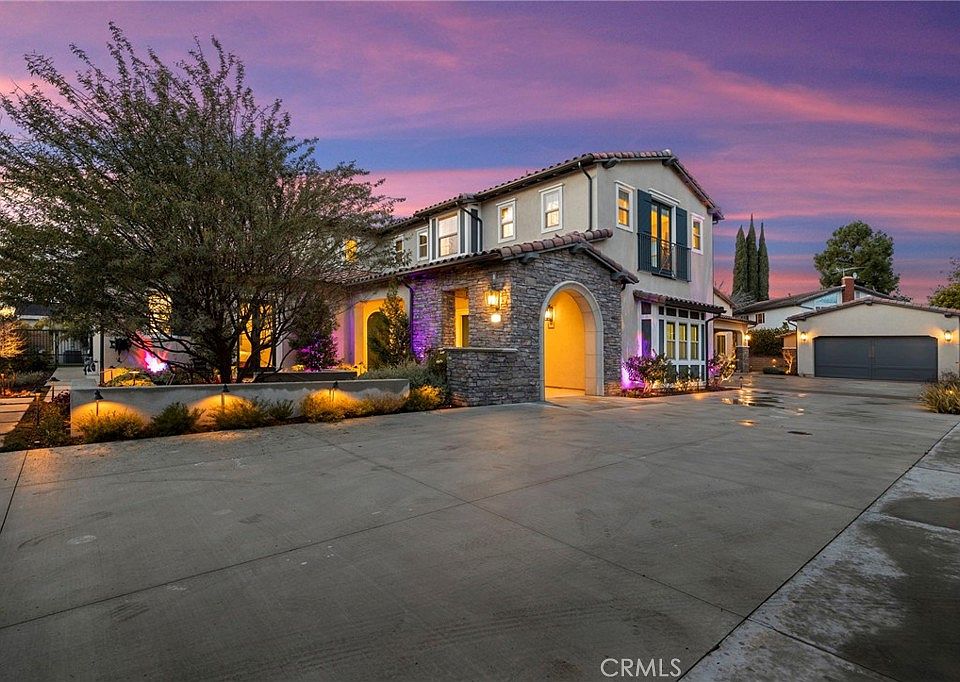 What a rare opportunity to have a home where every detail and upgrade was done to create the perfect environment and space for your ultimate enjoyment. The current owners were involved in every decision with the builder to make this custom home a once in a lifetime dream! This property offers a 4,805 square foot main house with 5 bedrooms, 5 1/2 bathrooms, and a 100% flat and usable 1/2 acre lot. Inside, you will be blown away by one of the most breathtaking Great Rooms with 20 feet ceilings, wide plank French oak flooring, and California doors that open up to the resort like backyard oasis. Ground floor large primary bedroom offers ensuite bathroom and his and hers walk in closets. Guest suite with ensuite bathroom is also on the first floor with direct patio access. Large gourmet kitchen surrounds center island with Subzero refrigerator and freezer with GE Monogram ovens and a 6 burner plus griddle chef's range. Salon with private adjacent wine bar, a private office, separate laundry room, lovely powder room, and walk in pantry all add to the impressive and well designed downstairs living area.Upstairs, you will find a secondary master bedroom with ensuite bathroom, and two additional bedrooms and shared bathroom. Luxurious landscaped property also includes a full size in ground pool with glass tile surround, a private spa, two custom structures perfect for privacy and entertaining, a 4 hole putting green, a 30' x 60' sports court, a custom BBQ structure, and a private exterior bathroom with shower. Attached to the home are two 2 car garages with a 10 x 10 work area in between. You will also find a 22' x30' shop with a 15' sill height to accommodate a car lift, room for three additional cars, polished floors, and a mini split heating/AC unit. This amazing space also includes a attached 12 x14 office, a drive through garage door to the back yard, and a 20 x 20 washbay in front of garage plumbed and ready for a boom mounted pressure hose. Just when you thought you might need any more car or toy space, there is an additional 2 car garage to give you a total space for 9 vehicles. Looking for an ADU option? The shop, office, and washbay is ready with connectivity for a potential and private 1,228 sq. ft. ADU. Technology upgrades throughout home that include solar panels, 3 zone AC/Heat dual air units, 3 electric car charging circuits, full home wired Cat 6 ethernet, water softener, and dual tankless water heaters. We can't wait for you to meet your new home!