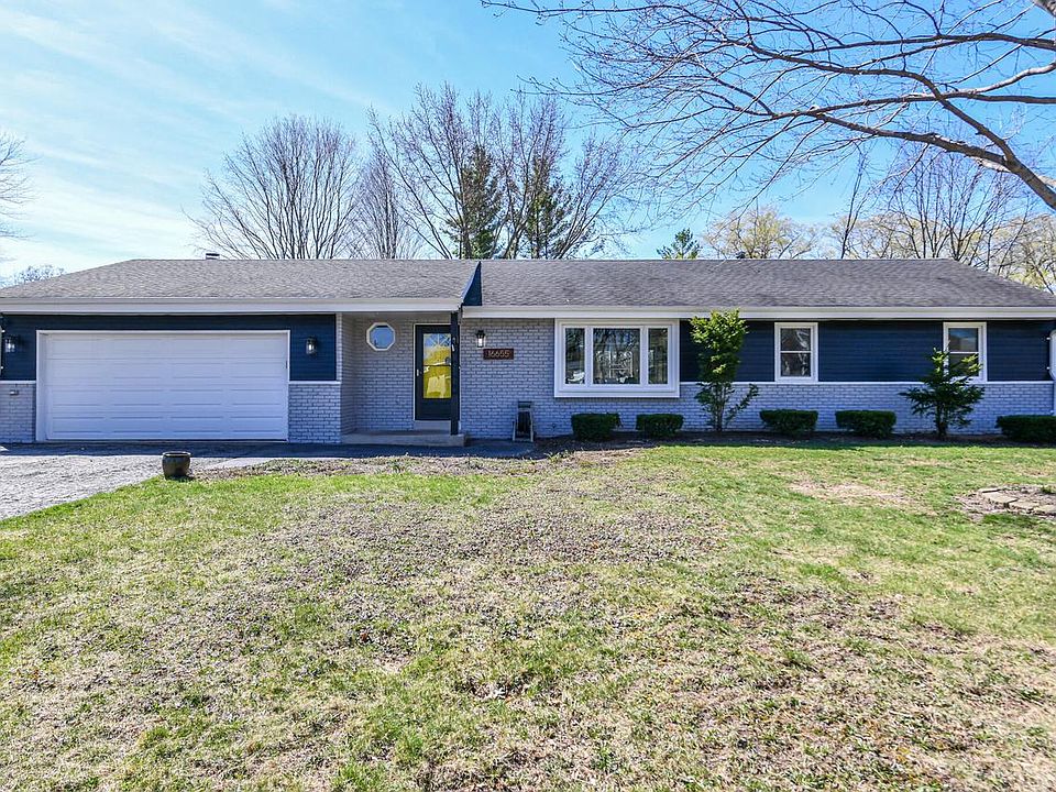 Welcome home to this spacious ranch on almost an acre lot with wooded back drop. This home offers wonderful flow for entertaining and updates galore. Living room with window seat opens to updated kitchen and dining area with patio doors to the spacious yard. Family room with Natural fireplace and vaulted ceiling is great for a quiet night at home or hosting for all the games. Three spacious bedrooms plus updated full and half bathrooms complete the main level. Basement is partially finished with a great workout area and a possible home office or play room and there's still tons of storage. There is truly nothing to do except move in and enjoy summer fun!