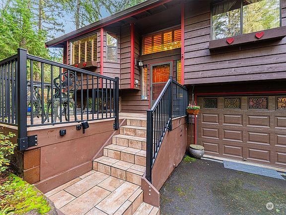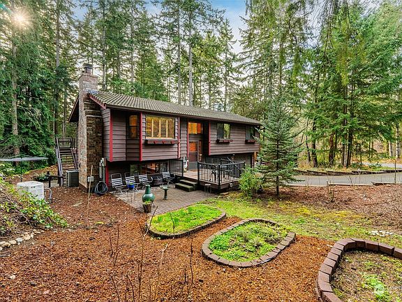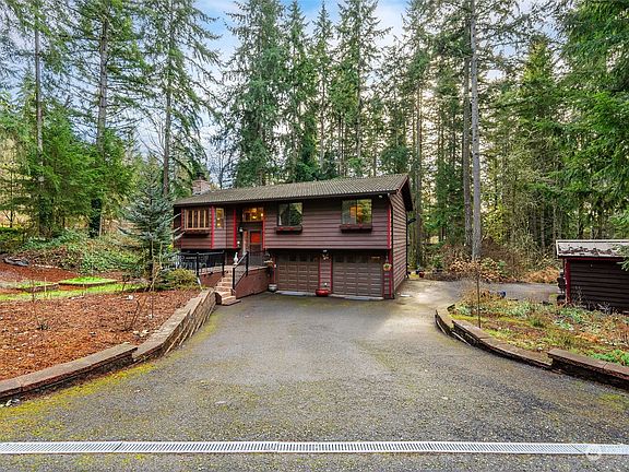 Charming 3BR split level on secluded shy acre lot. Nice functional layout-Living room w/ cozy wood burning fireplace & heatilator, granite counters in kitchen, soft close drawers, new sink & refrigerator. New solid wood interior doors & custom wood blinds. Updated main floor bathroom. Gorgeous custom built deck, runs full length of the home enjoying the private & peaceful wooded setting. Basement family room w/ freestanding wood stove is perfect for your pool table. Forced air heat w/ heat pump. New electrical panel w/ room to expand. New water heater. Whole house surge protector. Generac generator. Concrete tile roof. This commuters dream sits on the bus line, easy 15 min to Seattle Ferry, 5 min to Poulsbo. RV parking, shed & garden space.