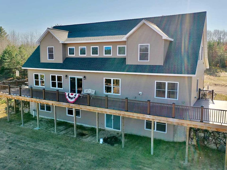HUGE PRICE DROP 12/09/2020! Unique opportunity to own a massive Up North lodge on 15+ acres with a pond in Osceola County. Just 15 minutes from Cadillac and close to Rose Lake, this 3,500 sq. ft. home sits high on a hill with fantastic private views of wooded acreage. Built just two years ago, this custom home has a great open floor plan with nine-foot ceilings throughout! Charming rustic features like the knotty pine interior, solid oak hardwood flooring, hickory cabinets and red cedar kitchen countertops give this home a true Northern Michigan vibe. Other highlights include a grand foyer, a huge L-shaped kitchen island with seating for eight, a second kitchen island, a large dining area, and living room with a custom built-in aquarium. Upstairs, a giant loft could be a second living area, a family rec room, or home office space. The home boasts spacious master suite with a luxurious jetted soaking tub, tiled shower, large walk-in closet and private balcony! There is a second bedroom and bath on the main floor, as well as a large third bedroom upstairs. There are lots of options for further growth and expansion, including a full unfinished walkout basement with egress windows that would easily allow for even more bedrooms, and a bonus room (32x28) above the garage. Main floor laundry room with utility sink and a half bath, oversized attached two-car garage and a small storage shed. Enjoy low heating bills thanks to a very efficient pellet stove. Huge wraparound front deck and covered back porch are made of maintenance-free composite Trex decking. So much space makes this property an ideal candidate for a Bed and Breakfast, a church retreat/event center, or even a multi- family hunting lodge or vacation getaway. Property is move-in ready and must truly be seen to appreciate the expansive size. Bring your vision and make this dream property work for you!