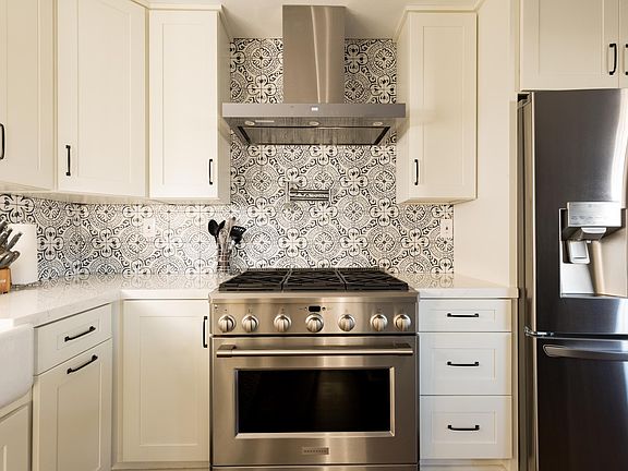 The kitchen is equipped with a new MONOGRAM Gas Range 6 burners and all appliances (Fridge, dishwasher, dryer, and washer) are brand new