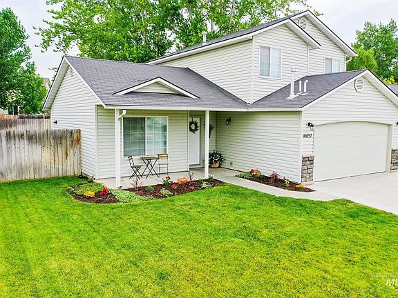 This home is truly made for both entertaining and everyday living, with plenty of space to spread out in, with a living room and a family room on the main level. Enjoy the open floor plan, high ceilings, plenty of cabinets, a kitchen with stainless steel appliances, and a roomy pantry. The heart of this home, the kitchen- with adjoining dining and family rooms- make it ideal for gatherings. All new laminate floors throughout. This has been set up as a smart home. (Doorbell, garage door, thermostat & lights) Walk outside to your backyard oasis, a shady paradise with a patio and a designated fire pit corner with a built-in cooler! Perfect for those Idaho summer nights under the stars. Close proximity (walkable) to both grade school and the high school. This property is well cared for, and ready for new owners. New HVAC in 2021. RV Parking too! Come see this wonderful home in a great neighborhood today!