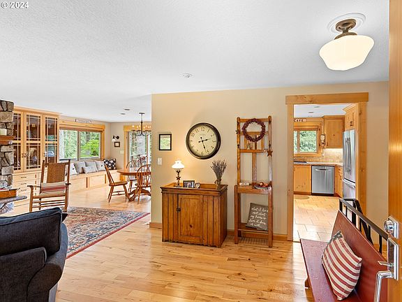 Welcome home to your beautifully maintained retreat! This charming daylight ranch is a perfect blend of timeless craftsmanship and modern updates, ensuring comfort and convenience at every turn. As you step inside, updated windows flood the space with natural light, accentuating the gleaming hardwood floors that flow throughout the main level. The spacious kitchen is a chef's dream, featuring an eat-in island and custom alder cabinets providing ample storage and adding a touch of elegance to the heart of the home. Also upstairs are three bedrooms, including the primary with ensuite bathroom and large double closet. Downstairs offers flexible living options with a large living space and full bath, perfect for guests or a home office. Additionally, a high-end detached studio on the property offers even more versatility. Situated on a generous corner lot spanning 0.45 acres, outdoor lovers will delight in the masterfully planned backyard oasis. Discover tranquility by the koi pond, stroll across quartzite walkways, or simply relax and unwind. Whether you prefer soaking up the sun on the upper deck or enjoying the shade on the lower covered deck, this home offers all-season enjoyment for outdoor living at its finest. Attached oversized two car garage with dedicated workspace! Located in eastern Oregon City, you'll enjoy easy access to local amenities, parks, and recreation opportunities while still being just a short drive from Portland. Don't miss your chance to own this meticulously cared for gem, where timeless charm meets modern comfort. Schedule your showing today to fully experience this exceptional property! Ask your agent for the full list of updates and features.
