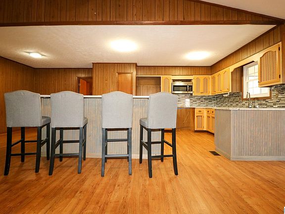 Large family home located near town. This home has an open floor plan. Large living room with wood burning fireplace. Kitchen has lots of cabinets, two pantries, granite countertops and a large breakfast bar. An added bonus is the touch faucet in the kitchen. Enjoy your morning coffee in the sunroom that overlooks the back yard. The master bath has been remodeled with a beautiful tile shower. Downstairs is a finished rec/playroom. Pool table and tanning bed included. There is also a full bath and laundry room. Outside is a large fenced yard with storage building, one car basement garage and fenced back yard.