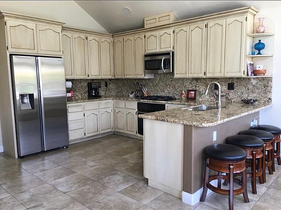 Beautiful home located in the desirable Creekbridge neighborhood. It features 3 bedrooms and 2 full baths. It welcomes you with a tiled entry and high ceilings. The formal living room has vaulted ceilings and windows to allow natural light to fill the room. The formal dining area has a lovely passthrough window to the family room with custom framing. The open family room kitchen is a great space to entertain or spend time with friends and family. The kitchen has stainless steel appliances, granite counter tops and back-splash and custom stain finish to the cabinets. Indoor laundry room with storage cabinets for your convenience. Spacious master bedroom with bath that has tiled floors, double sinks and tiled shower stall. Beautiful back yard with well manicured lawn and cement patio area. Conveniently located near schools, parks, hospital, dining, fitness center, shopping and more!