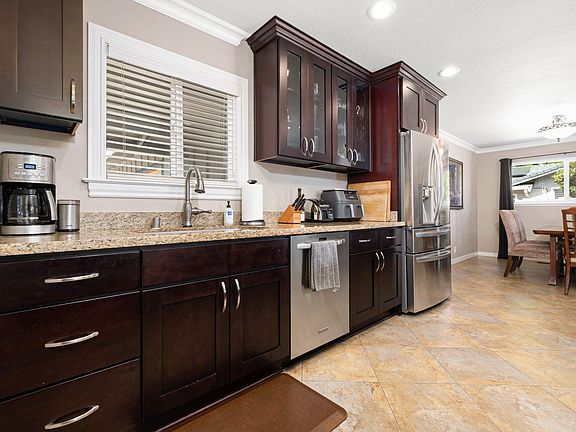 Beautiful Rancher, updated from head to toe. Amazing backyard retreat! Open concept floor plan with neutral color scheme and hardwood floors throughout. Updated granite kitchen with large island and stainless steel appliances. Including gas stove, dishwasher and wine refrigerator. Both bathrooms newly remodeled. Large mudroom/inside laundry room with Brand new washer and dryer included with home. Primary bedroom is nice size with private bathroom, wall of closets and access to the backyard. Great backyard with huge patio & arbor, plus Bocce court and wired for outdoor TV. Two producing fruit trees. Two car garage with epoxy floors & additional built-in storage. Large driveway plus second driveway for extra parking off street. Weekly Gardening service included in rent. Please do not disturb occupants. Property will be available August 1st. Owner pays for weekly gardening service. Tenant responsible for all utilities. No smoking of any substance on or inside of property. Security deposit due once accepted by Broker.