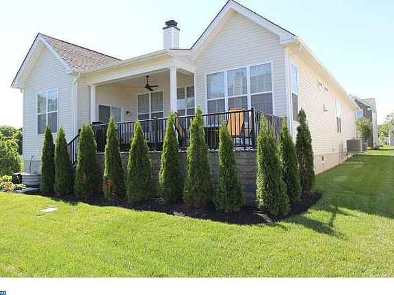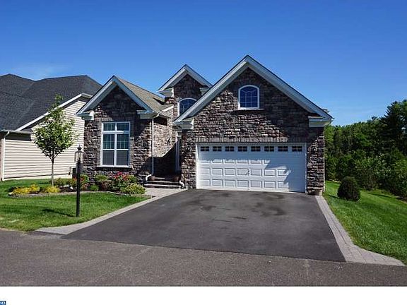 Absolutely amazing 1 year new single home in the Regency at Yardley, a Toll Brothers 55+ development. This home has major upgrades throughout consistent with a sample home or even nicer.~ Seize your opportunity to just move right in, all the work is already done and you don't have to wait. This end lot has a nice open feel and is the last home on the street. The impressive stone front design catches your eye as soon as you pull up to the large driveway~~~, 2 car garage and EP Henry walkway leading to the impressive entry. Magnificent 2 story marble sunlit foyer entry with large coat closet and chandelier. Very large 24x16 open living/family room with gas fireplace, recessed lighting and beautiful hardwood flooring throughout the living room, dining room, kitchen and breakfast rooms. Dining room with recessed lighting, crown moldings and chair rail. The eat in kitchen is a chef's delight featuring recessed lighting, oak cabinetry with lots of upgrades and features, granite counter tops, cut stone back splash, stainless appliances, double oven, commercial range with hood, over sized sink, dishwasher and garbage disposal. Breakfast room with exit to a really nice rear extended patio with EP Henry pavers, covered section with ceiling fan and gas line for grilling. French doors open to the master bedroom suite with sitting room, slider exiting to the rear patio, tray ceiling, crown moldings and walk in closet. Very large master bath with extra cabinetry, granite tops and extended custom ceramic tile stall shower. the second bedroom is good sized with plenty of closet space and just off the bedroom is a 2nd 3 piece ceramic tile bath with granite tops. The high ceilings, wide moldings and large(84') custom interior doors add to the elegant feel. Now for the best part the magnificent finished basement with high ceilings, full ceramic tile bath and gym with glass doors that feel like hotel quality entry doors. This entertainment level features an enormous wet bar with granite tops, ceramic tile flooring, island bar, glass back splash, recessed lighting, beer/wine refrigerator, ice maker, dish washer and convection microwave. There is over 100K invested into the basement alone it is a must see and feel. An unfinished storage area houses the 2 separate Carrier heating and air conditioning units, one for each floor, as well as the water purification system and 200 amp electric. The association building and amenities are impressive. Indoor/outdoor pools,gym,tennis etc.