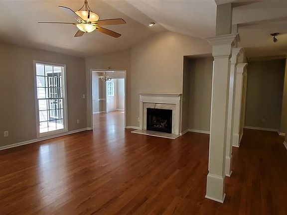 Wow what a lot 3.67 acre partly wooded. Beautiful refinished hardwood floors throughout the home as well as freshly painted walls and trim. The home also has a new roof. Tile floors in utility room and baths. Family room has triple columns, gas log fireplace, cathedral ceiling. Kitchen has Oak cabinets with solid surface counters, gas stove, island with a breakfast bar. Large Owners suite with walk in closet, and lots of natural light, garden tub and separate shower. Make this your new home! Won't last!