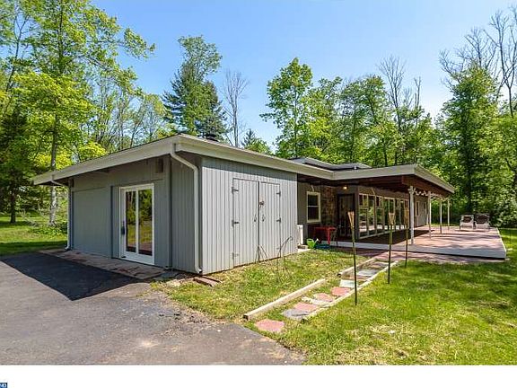 If you like Frank Lloyd Wright architecture and quiet rustic living, then this unique home is for you. The large living room/dining room combo has a woodburning fireplace, wood beam ceiling and an entire wall of windows to let in the secluded view of nature. The family room has a free standing fireplace, as does the main bedroom. Two closets and a sitting room are also in the main bedroom. The huge 53 x 16 maintenance free composite deck is large enough for any outside entertaining. This home has extra storage out by the deck and in the shed. It remains comfortable inside with Air Com heat & air units. Some upgrades are Cedar siding, new windows and new well pump. The edge of this Lot ends at the pond, where you can listen to the bullfrogs sing. 99 year lot lease. Buyers must go through a membership process. The buyers must meet 80% of the homeowners and be voted into the community. Usually takes 3 to 4 months. go to bryngweled dot org.