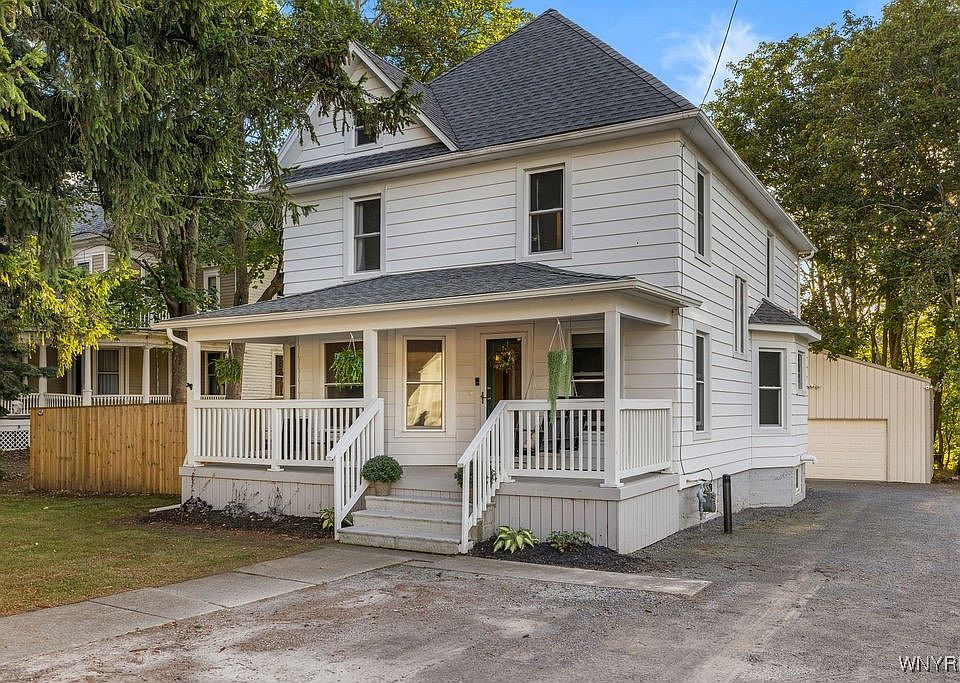 The walk-up third-floor attic offers the potential for additional finished living space or plenty of storage, plus the basement. Recent updates include newer windows and doors, flooring, insulation, new fence, updated baths, newer electric service, roof (about 8 years old), and central air (2022). Great yard with a newly poured concrete patio, fully fenced, and a large 24x24 pole barn—perfect for storage, hobbies, or a workshop.