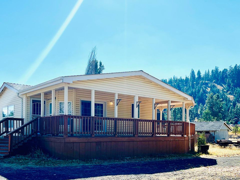 Manufactured Home on 3.59 flat Acres 2 Bed 2 Bath in beautiful Keno! Lovely kitchen with lots of counter and cabinet space, laundry room, bonus room off main room. Welcoming wrap around deck! Detached 2 car garage with bonus room above. Car and RV port, small barn, wood shed.