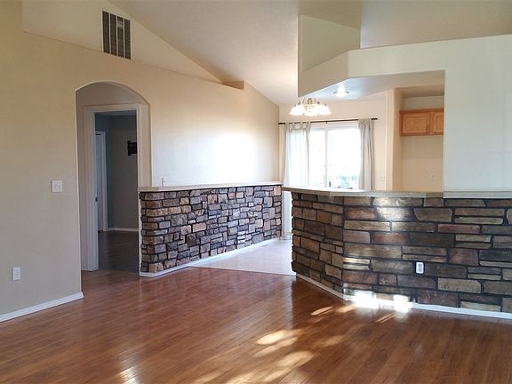 Split bedroom design. Spacious floor plan with a kitchen that is open to the living room. No backyard neighbors. Back yard faces East for shady barbecues! Kitchen features a deep ceramic sink, lighted pantry, built in microwave, and a breakfast bar! Master suite features wood laminate floors, two closets and a large bathroom. Bedrooms 2 and 3 have carpet, all other flooring is hard surface for easy cleaning!