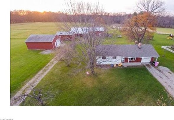 Three bedroom and full bath ranch on 5.84 acres. Several out buildings on property - barn with stall, loft can hold 400 bales. Machine building and corn crib. Fruit trees. Chimneys tuck pointed and re-flashed in 2013, roof with/in 5 yrs., newer siding.