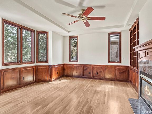 - Description: Large Family Room With Built-In Bookshelves, A Gas Log Fireplace, And Hardwood Floors.
